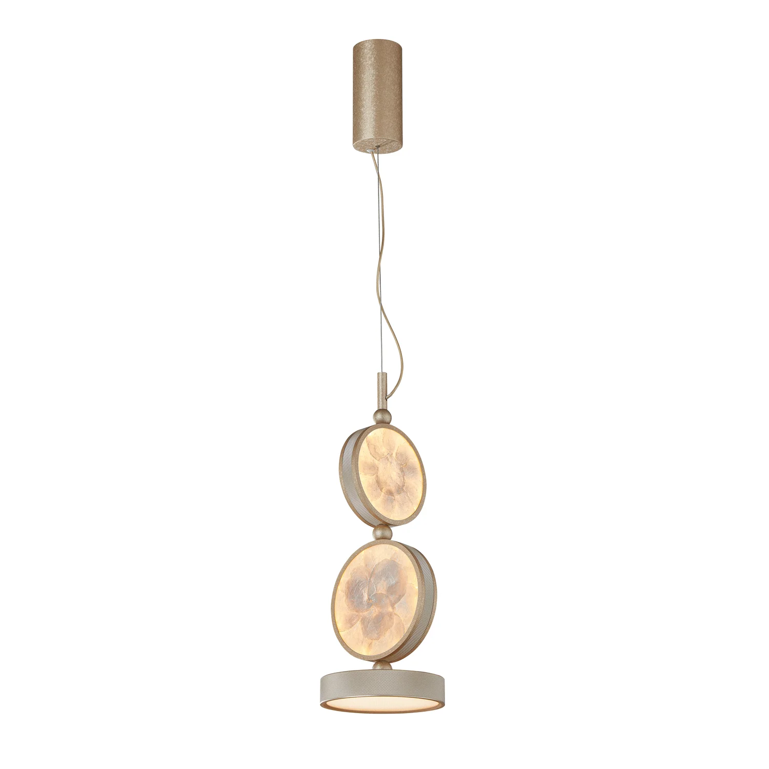 Коллекция светильников Solarius вдохновлена образами солнца и природной пластикой натуральных материалов. Круглые формы и многослойная композиция создают мягкий, обволакивающий свет и выразительный декоративный эффект. Светорассеивающие элементы выполнены из натуральной морской ракушки, благодаря чему каждый светильник обладает уникальным рисунком и тёплым перламутровым свечением. Металлические элементы с матовой фактурной отделкой формируют чёткий контур и подчёркивают геометрию светильников. Solarius подходит для жилых интерьеров, зон отдыха и спален, выступая выразительным декоративным объектом и источником комфортного, мягкого освещения.