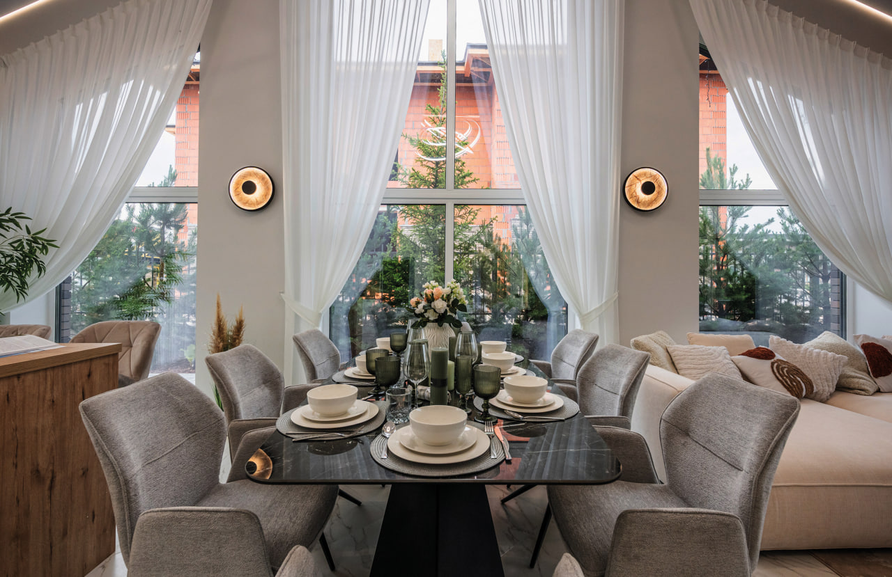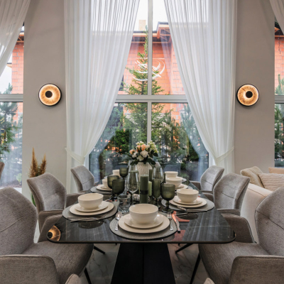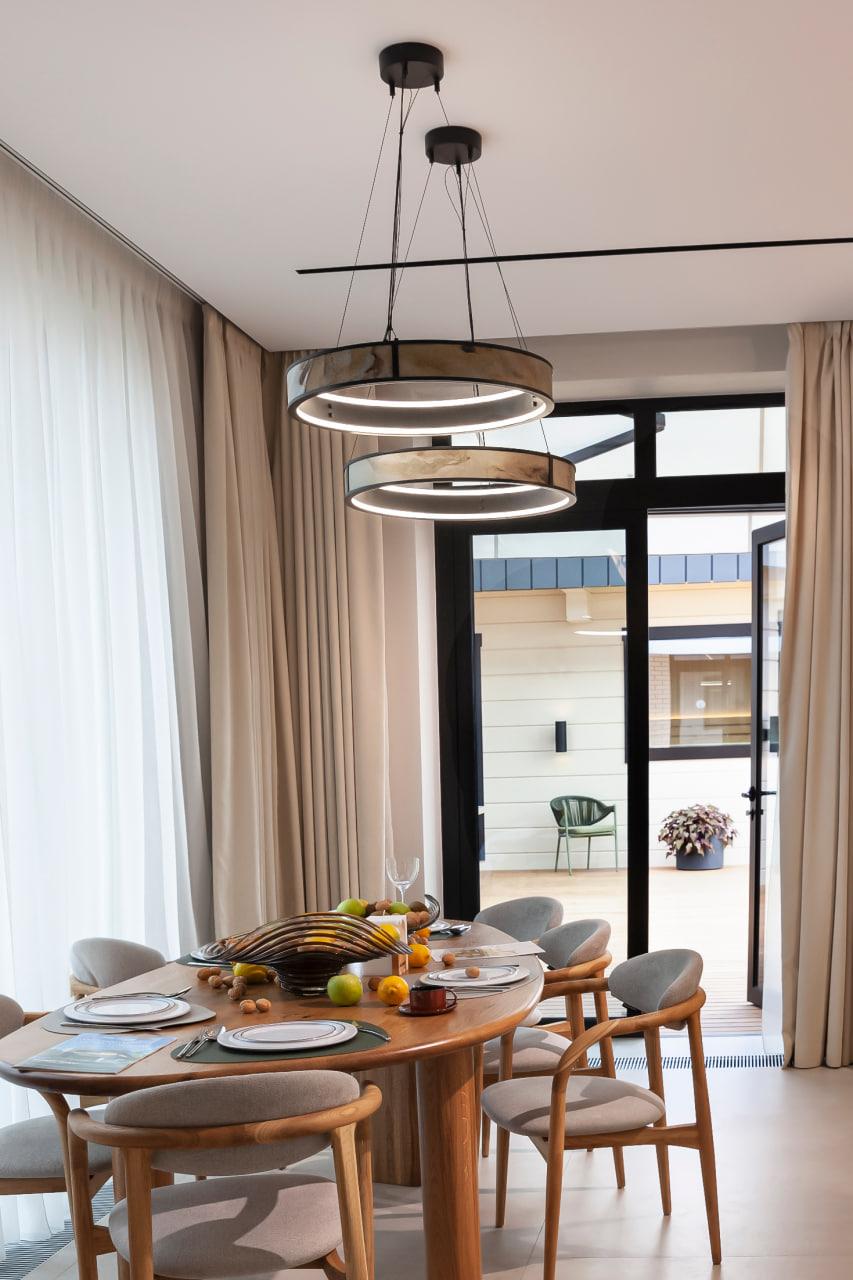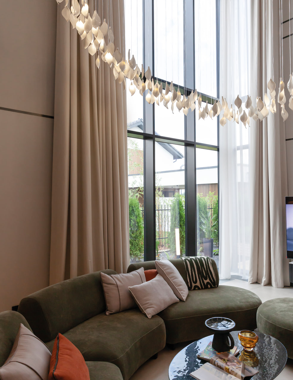 Мы показали, как свет может раскрывать архитектуру, подчёркивать детали и создавать настроение на каждом этапе: от фасада до интерьера, от декоративных светильников до скрытой подсветки. Для одного из домов мы создали авторскую люстру по задумке дизайнера проекта в виде каскада из более чем 200 нежных керамических лепестков молочно-белого цвета, подсвеченных светодиодными лампами.
