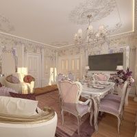 Просторная гостиная пропитана роскошью и грацией. Пудровые цвета в сочетании с нежными бутонами цветов на стенах делают комнату теплой и уютной. Элегантная люстра Favourite коллекции Glory великолепно вписалась в интерьер гостиной. Из хрустальных крупных элементов сделан «лавровый венок», который является основным ярким элементом коллекции. В таком шикарном интерьере каждый будет чувствовать себя значимым.