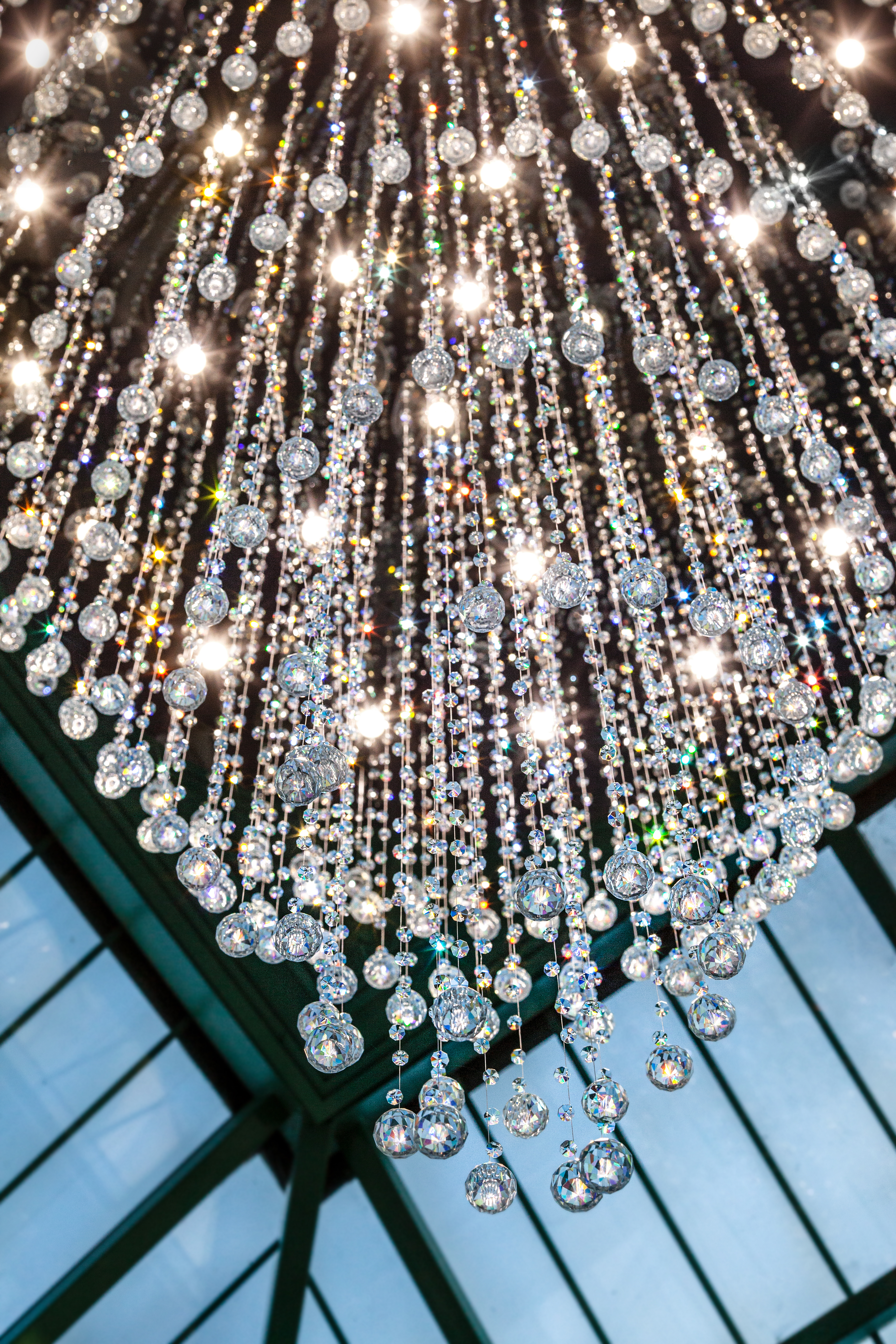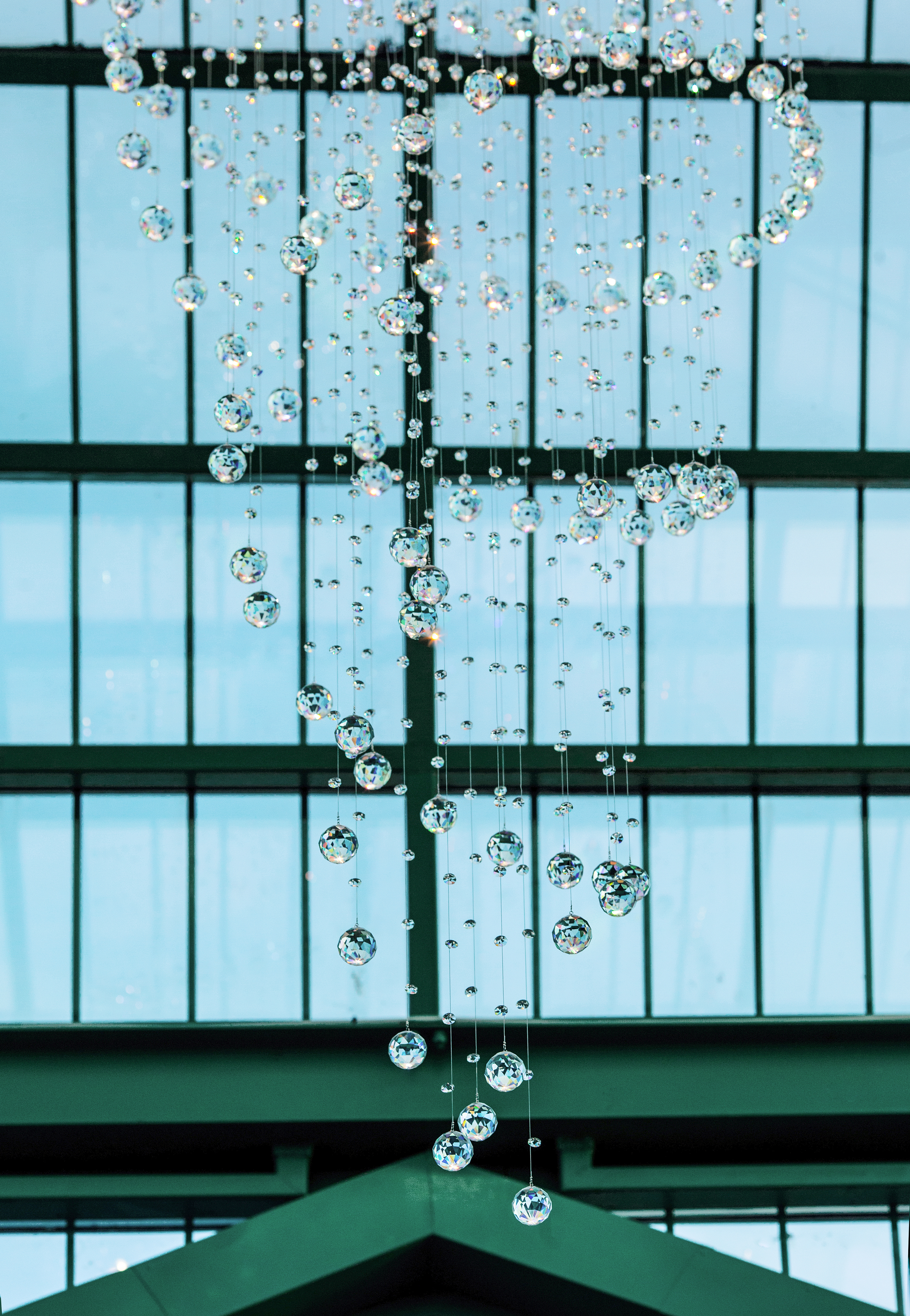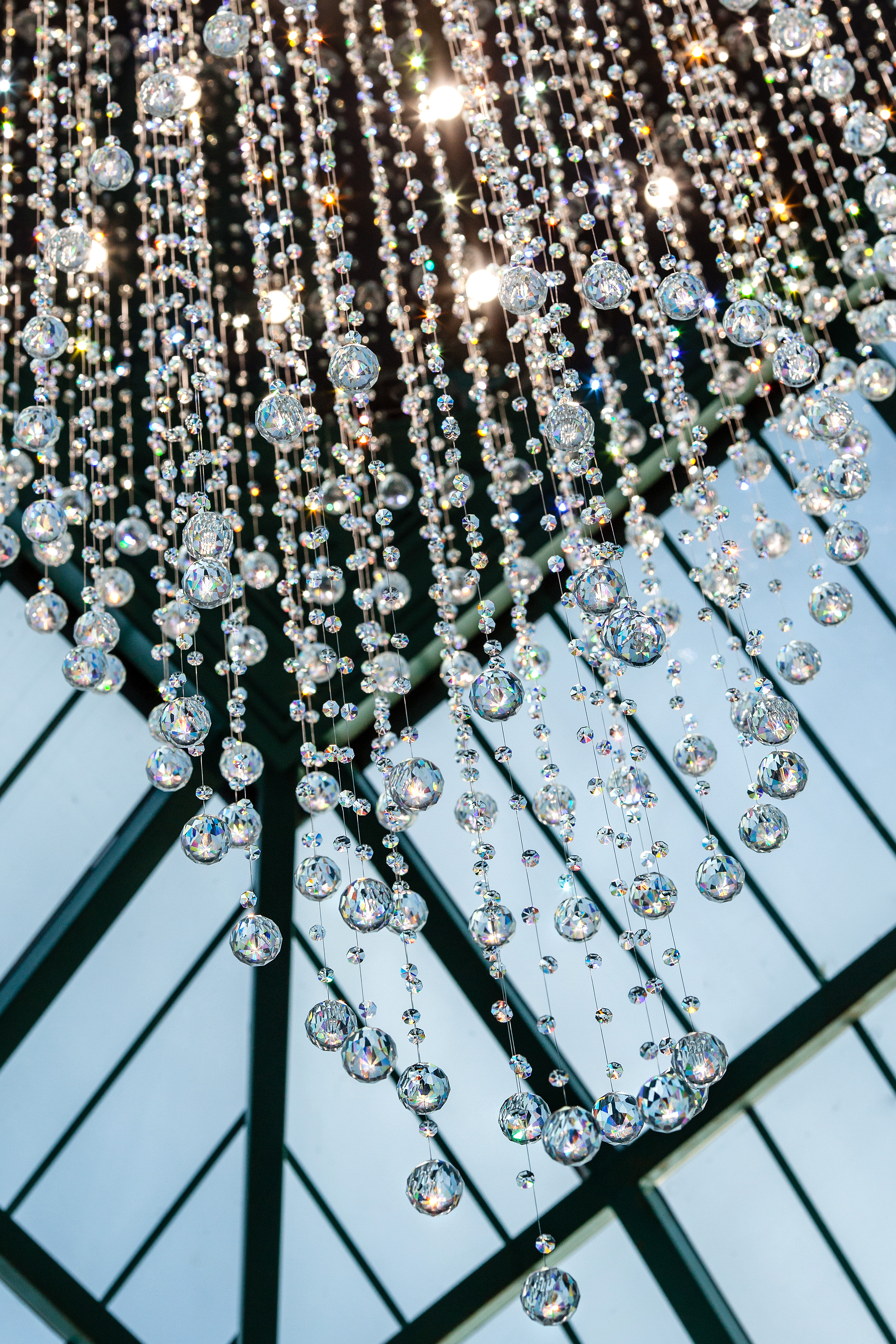 Эта люстра — настоящий световой водопад, отражающий естественный свет и добавляющий пространству ощущение воздуха и движения.