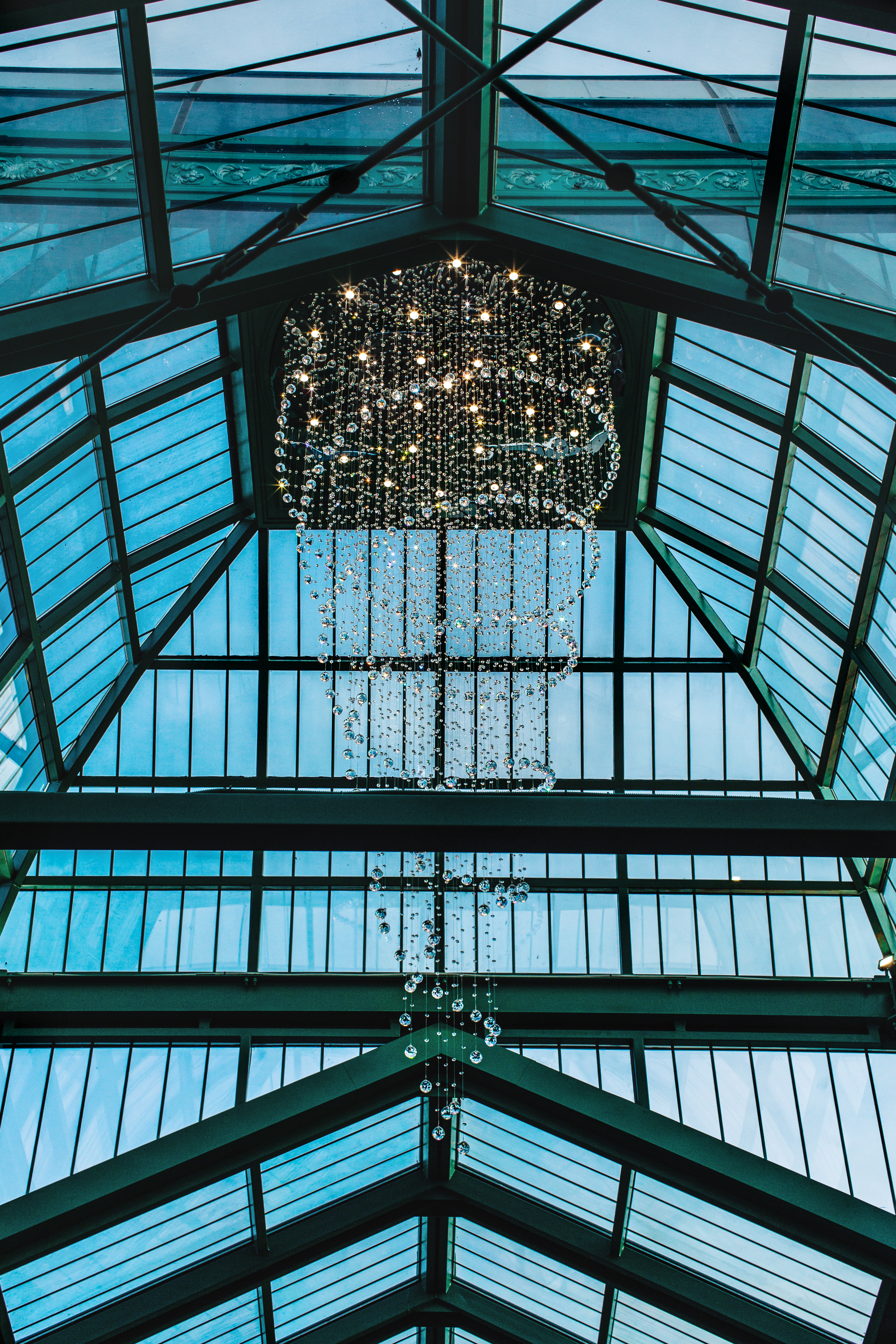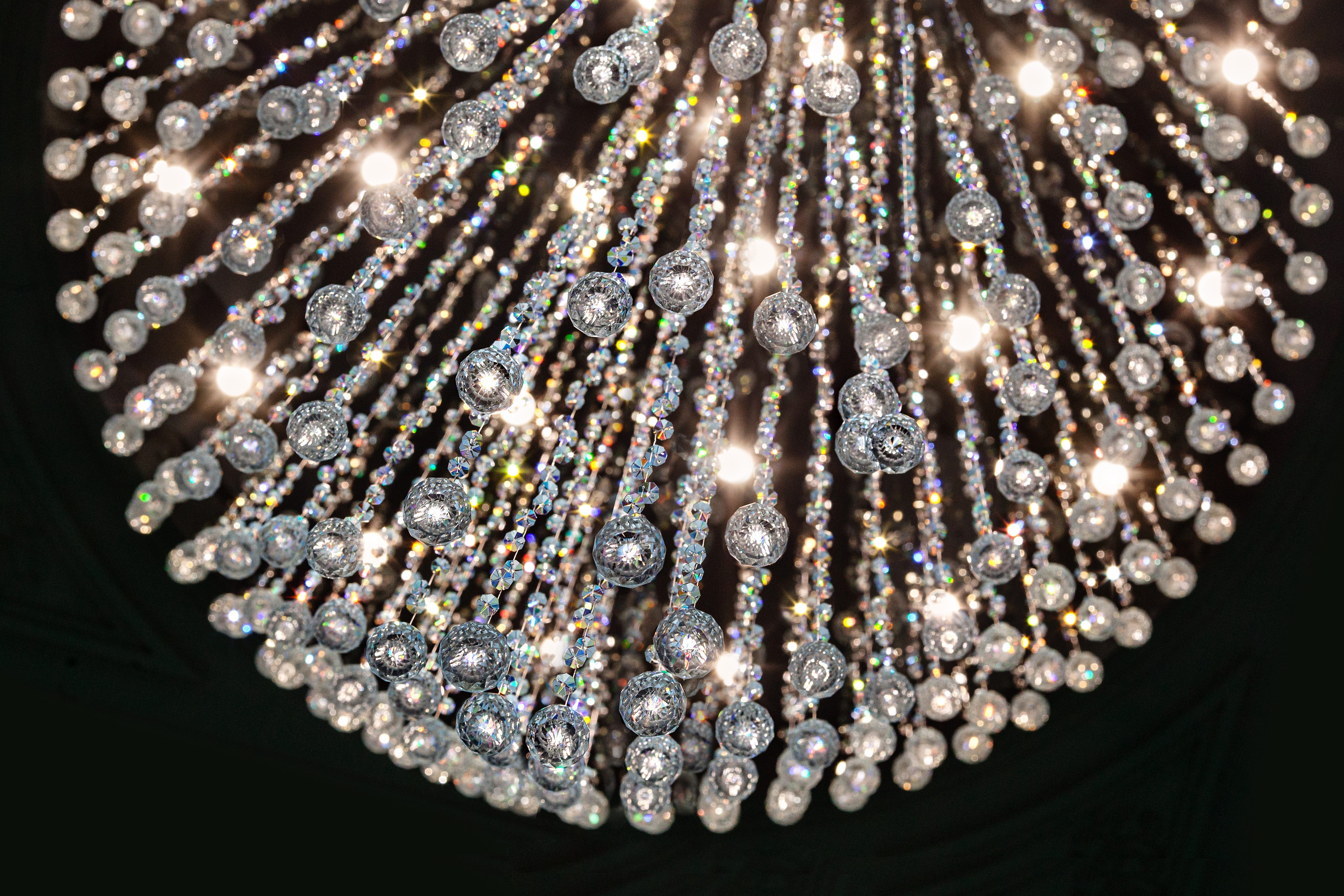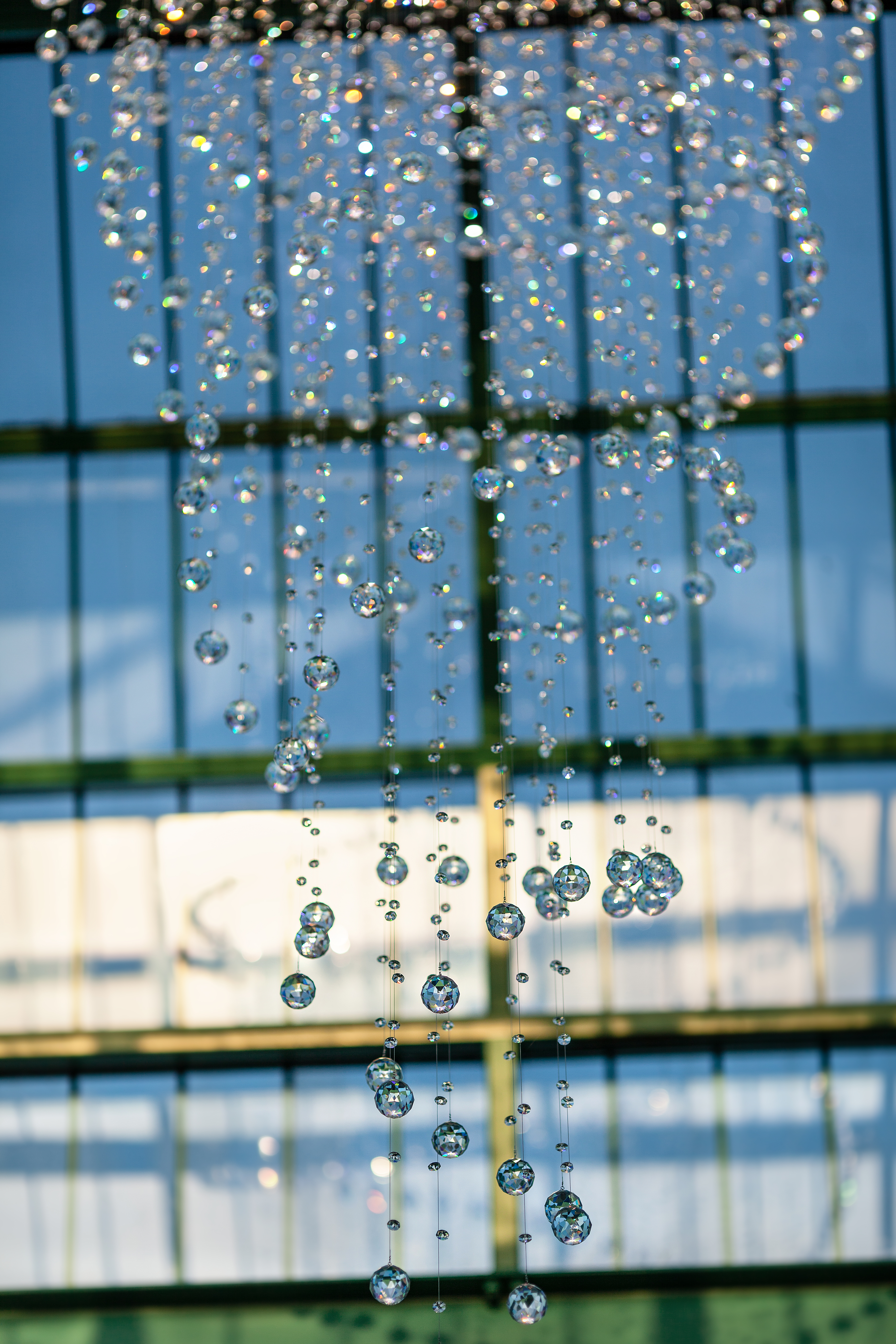 Эта люстра — настоящий световой водопад, отражающий естественный свет и добавляющий пространству ощущение воздуха и движения.